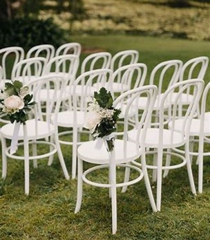 White Bentwood Chair, featuring a textured seat. A classic style, popular for wedding ceremony and reception seating, garden parties and galas.