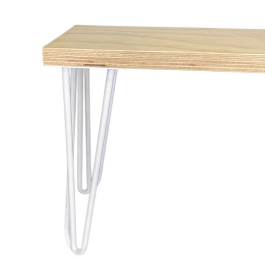 - Timber bench seat with white steel legs